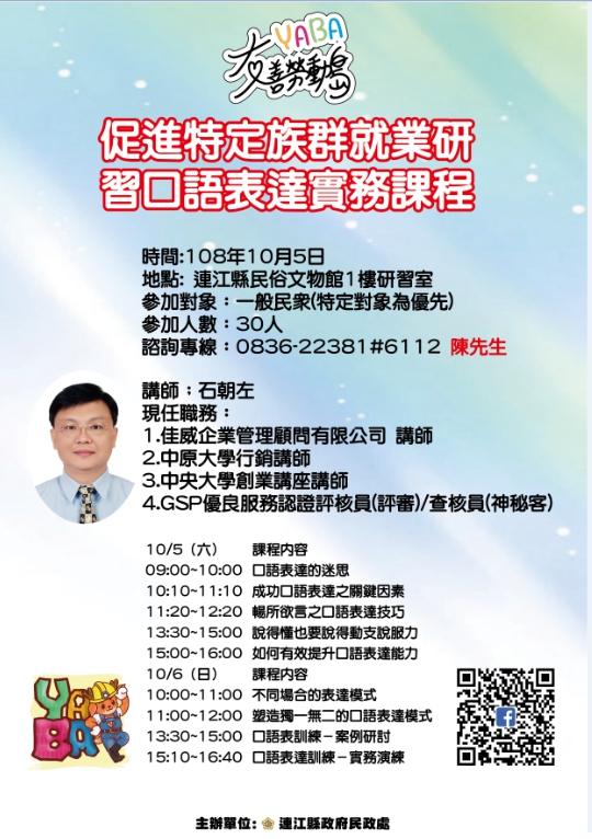 10/5-10/6促進就業研習口語課程 --閱讀人次 : 754 連江縣政府民政處
