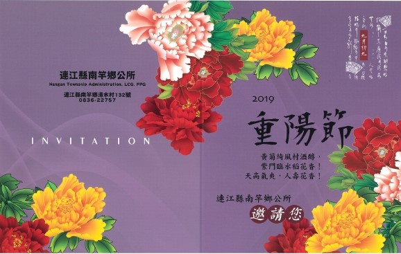 為慶祝108年重陽節,南竿鄉公所於10月5日(星期六)中午12時舉行108年南竿鄉老人節表揚模範老人、敬老楷模暨慶祝餐會活動,邀請南竿鄉65歲以上年長者參加。