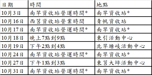 *註1:南竿資收站分別為復興、介壽及清水資收站,營業時間分別為復興下午1點30到3點、介壽下午3點30到5點及清水晚上6點30到8點