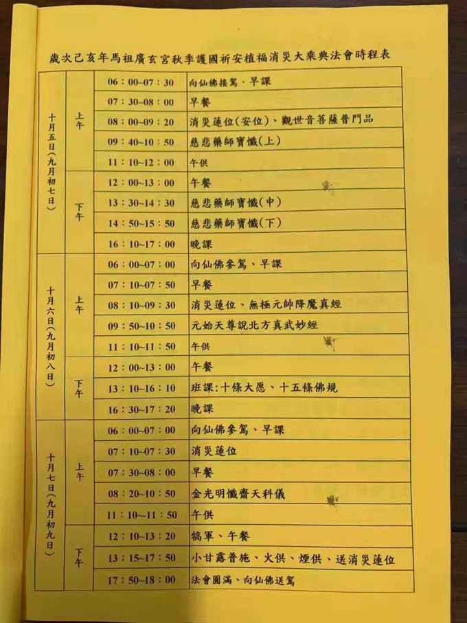 謹訂於2019年歲次己亥農曆九月初七至初九日三天