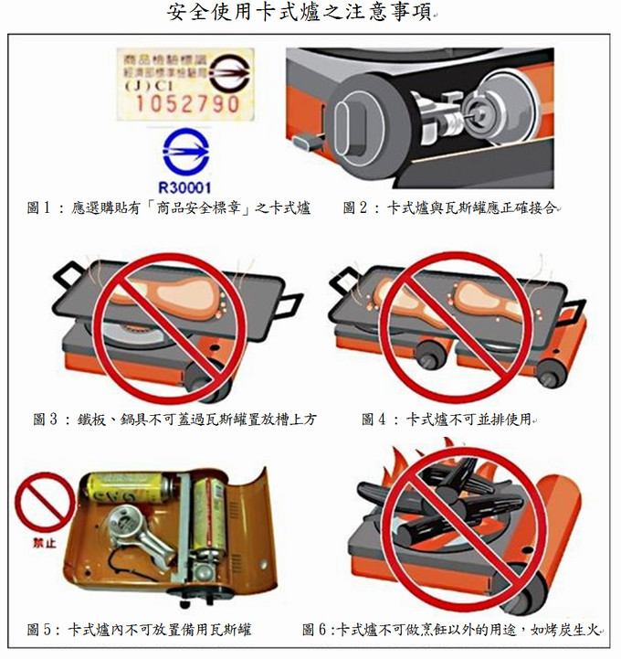 攜帶式卡式爐因輕巧方便,逐漸成為民眾野炊烤肉的熱門商品,由於瓦斯罐內是壓縮可燃性氣體,使用不慎即可能發生危害。秋冬前夕,標準檢驗局特別提供卡式爐安全使用注意事項,讓民眾用得安心、吃得高興。