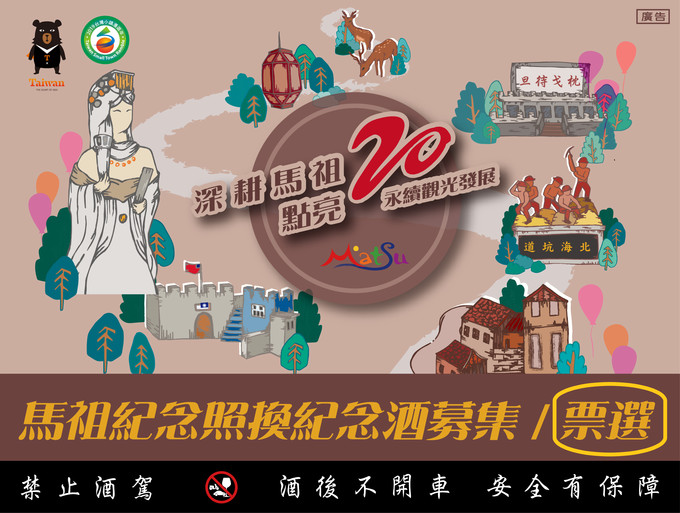 ②由民眾圈選作品票數總成績前50名者,可獲得限量「馬管處20週年慶」紀念酒乙瓶。