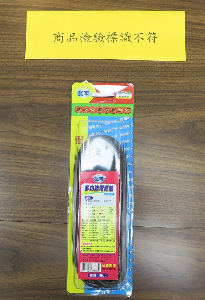 「電源線組」商品檢測中文標示不符