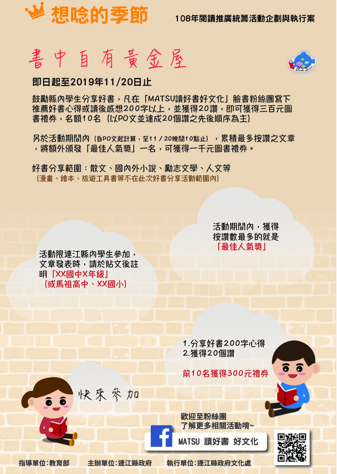 活動詳細辦法,請參考活動海報或「MATSU讀好書好文化」臉書粉絲頁
