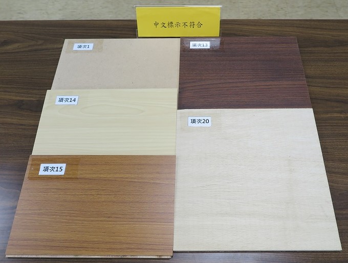 木製板材商品為普遍用於辦公室或家居等室內場所之裝修材料,若其甲醛釋出量不符合規定,恐有影響消費者健康之虞。經濟部標準檢驗局為確保該類商品之安全性,108年上半年於裝潢建材行、購物中心及大賣場等販售通路,隨機購買20件樣品進行檢測(包括普通合板6件、複合木質地板5件、單板層積材3件、裝修用集成材3件、特殊合板2件、中密度纖維板1件),檢測結果「甲醛釋出量」全數符合規定,「商品檢驗標識」計4件不符合規定,「中文標示」計5件不符合規定。