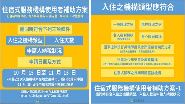 住宿式服務機構使用者補助方案懶人包 --閱讀人次 : 1127 【108年住宿式服務機構使用者補助方案】