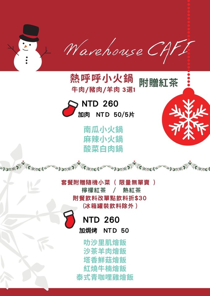 倉庫咖啡菜單更新 小火鍋開賣囉 !