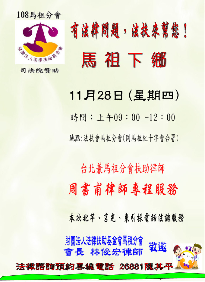 法扶律師已抵馬祖 28日上午面對面服務