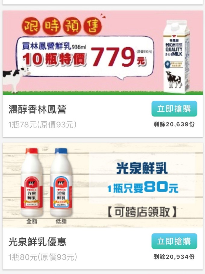 林鳳營鮮乳; 光泉鮮乳都可以!(可一瓶一瓶取貨)省去紙張麻煩~~