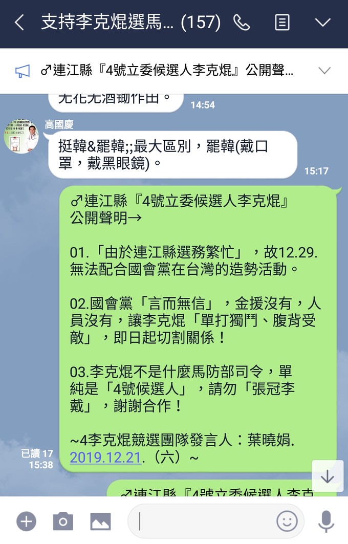 ◎2020馬祖立委「4號候選人李克焜」 競選總部秘書長&發言人「葉曉娟」