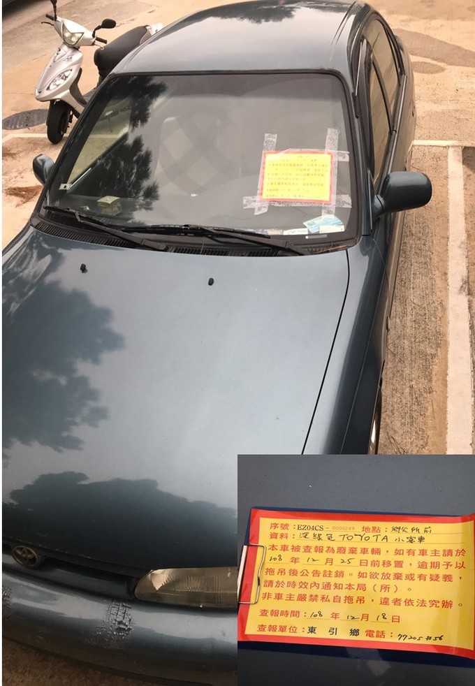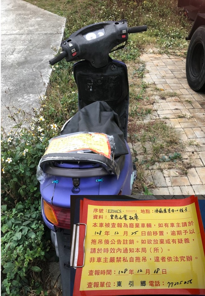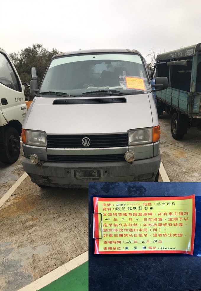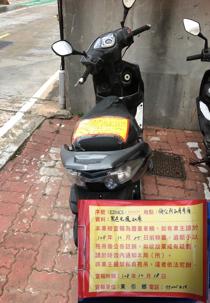 一、被查報為廢棄無牌車輛,如有車主者請於108年12月25日前移置,逾期本所將發文請縣府環資局予以拖吊後公告註銷。