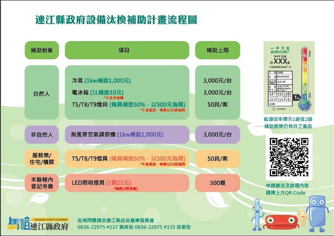 連江縣設備汰換與智慧用電補助 --閱讀人次 : 740 【申請補助期間】: