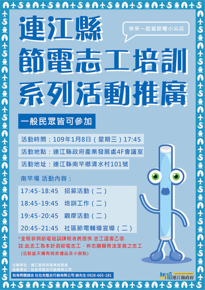 連江縣節電志工培訓活動推廣 --閱讀人次 : 1020 一般民眾皆可參加!