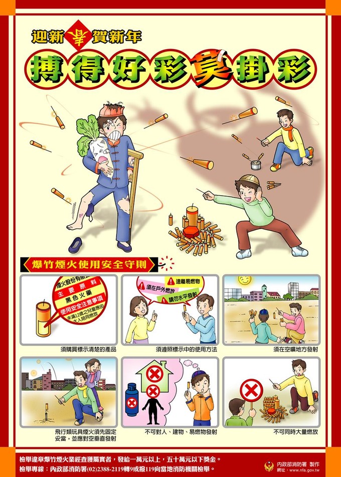 春節及元宵擺冥,鄉親常有施放爆竹煙火之慶祝活動,惟爆竹煙火具有一定之危險性,消防局莒光分隊提醒民眾在購買、施放時,應確實遵守以下愛安全守則: