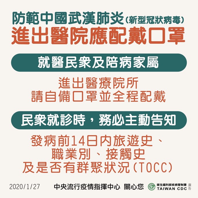民眾進入縣醫或衛生所請務必全程戴上口罩。