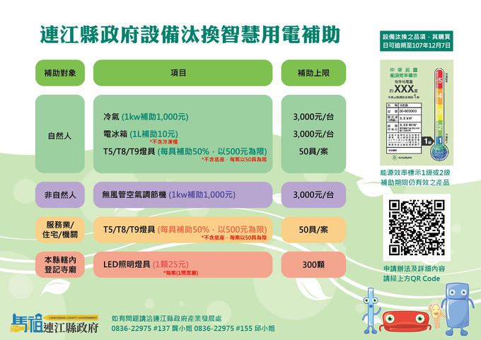 連江縣設備汰換與智慧用電補助計畫 --閱讀人次 : 850 『連江縣設備汰換與智慧用電補助計畫』