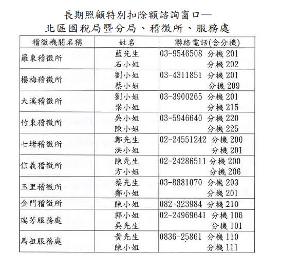 稅務申報問題:0800-000-321 (各地區國稅局諮詢窗口)
