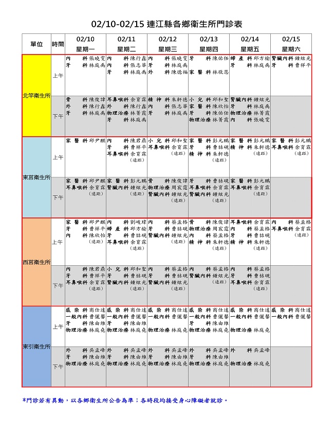 02/10-02/15衛生所門診表