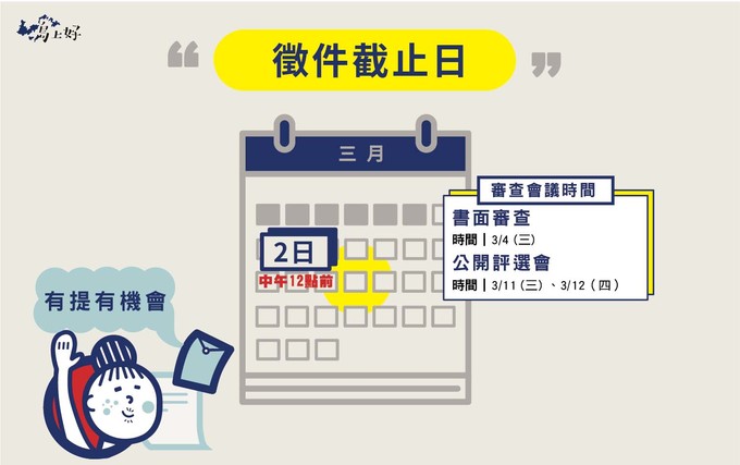 ▲公開評選會|2020年3月11日、3月12日,開放參與!