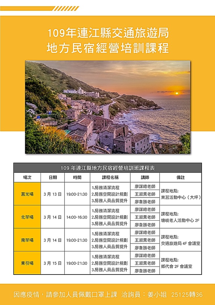 連江縣民宿經營培訓課程 --閱讀人次 : 1276 連江縣民宿經營培訓課程