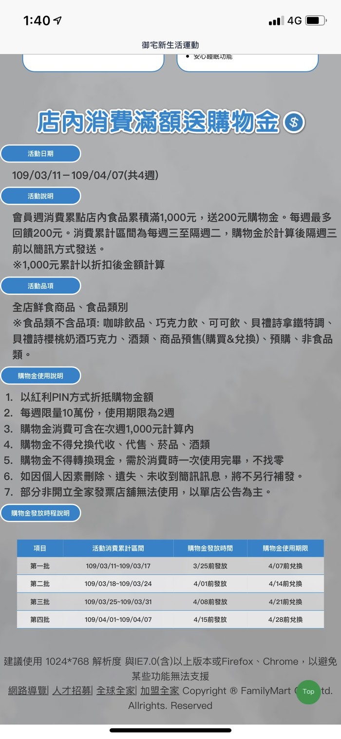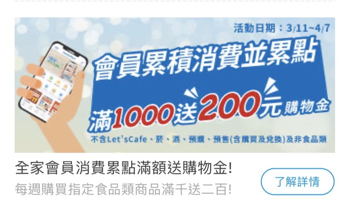 全家消費累計滿1000送200