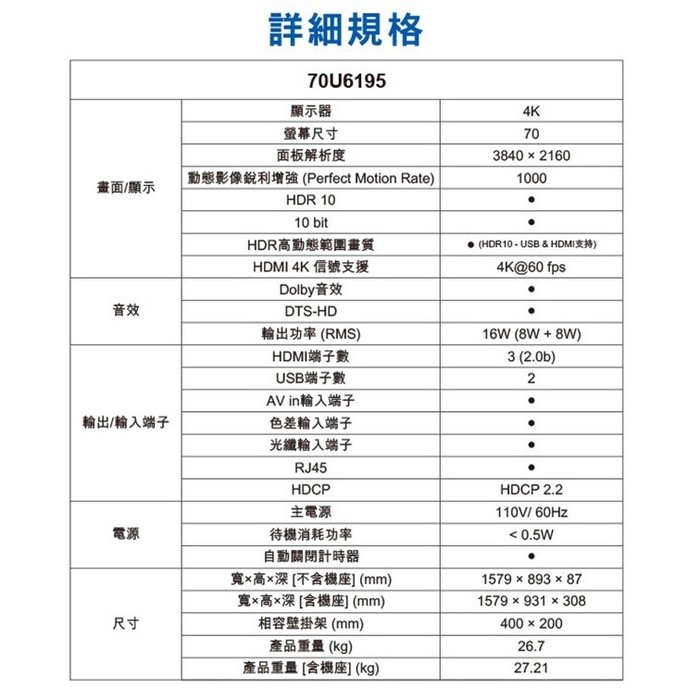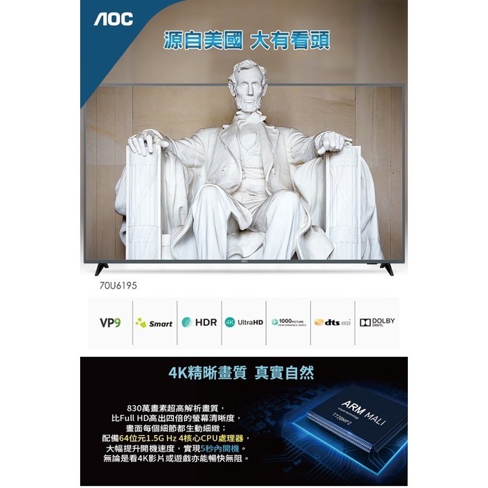 【美國AOC】 70吋4K智慧聯網電視 --閱讀人次 : 1067 【美國AOC】70吋4K HDR智慧聯網液晶顯示器+視訊盒70U6195