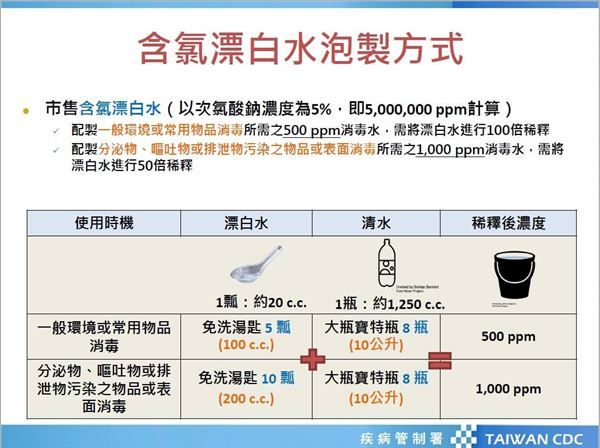 (二) 餐廳環境場所可以漂白水配置消毒水加強清潔。