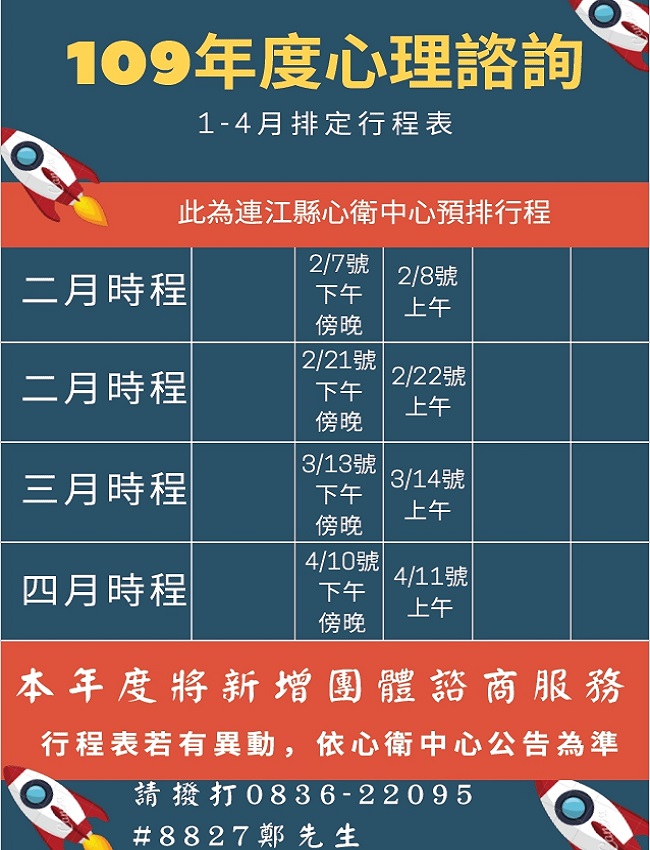 我們連江縣衛生福利局心理衛生中心所聘請的心理師,依舊排除萬難前來替各位解憂!