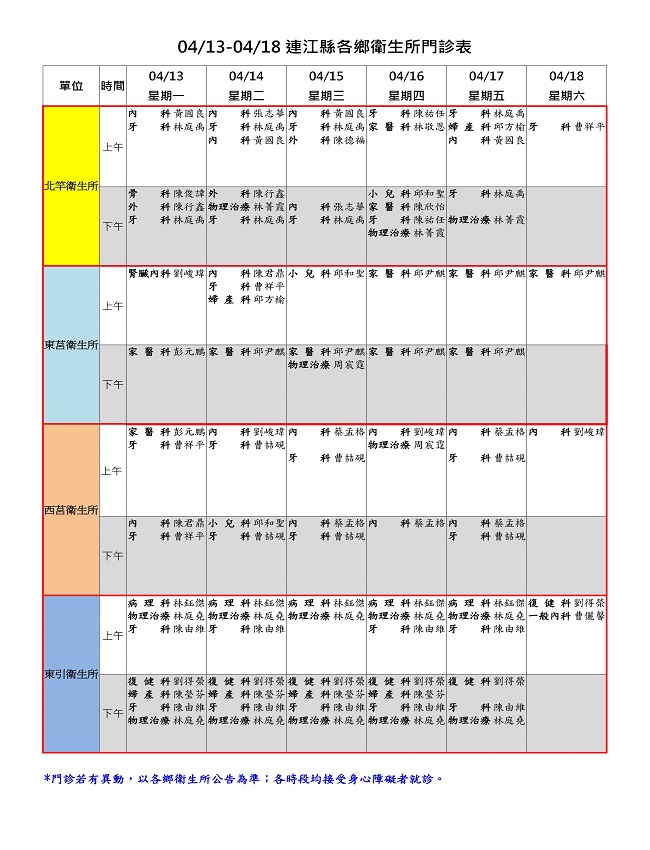 衛生所門診表0413/-04/18