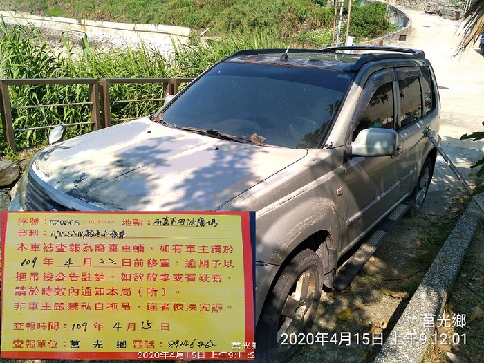 一、下列車輛經本所查報為廢棄無牌車輛,如有車主於109年4月22日前移置,逾期本所將發文請連江縣環境資源局予以拖吊後公告註銷。
