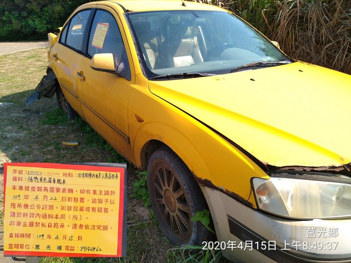 1.福特黃色廢棄轎車(14哨路牌往西莒公墓道路旁)
