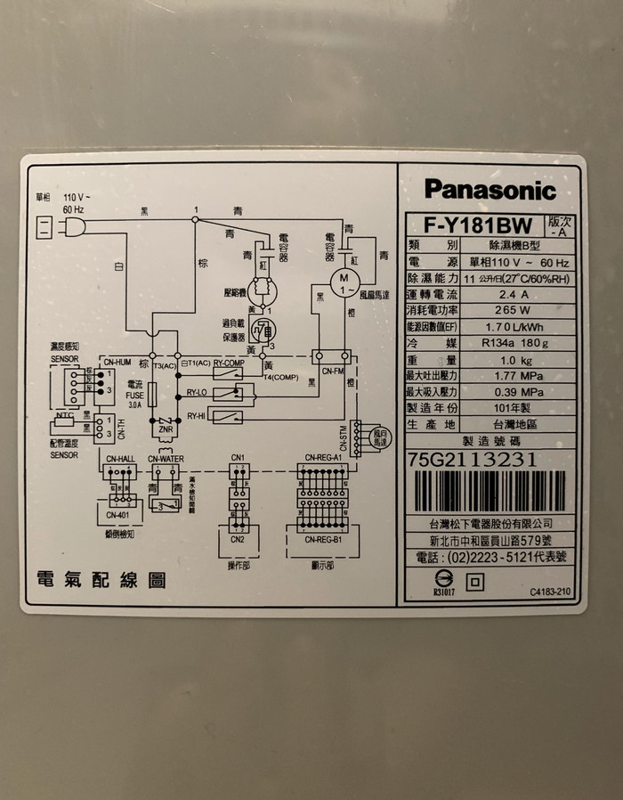 售:國際牌除濕機