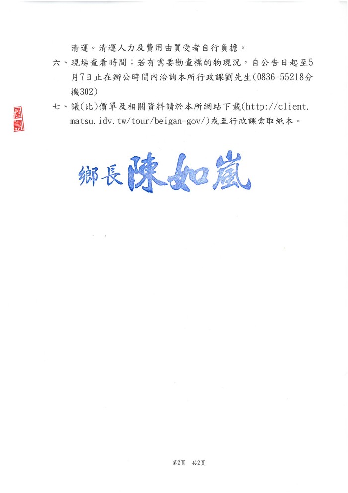 北竿鄉公所報廢公務車變賣公告