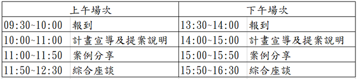 因疫情關係,本次提案說明會將會至四鄉分別辦理,時間地點如下:
