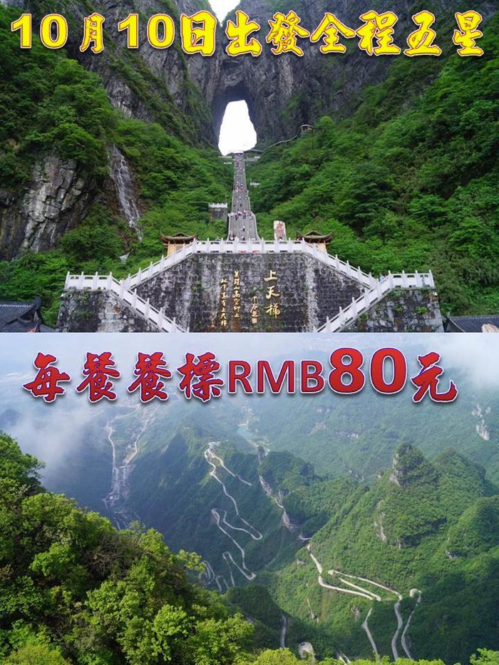 原有優惠方案不變,我們將用餐部分每餐餐標提升到:RMB80元加贈一場:天門山狐仙秀大劇