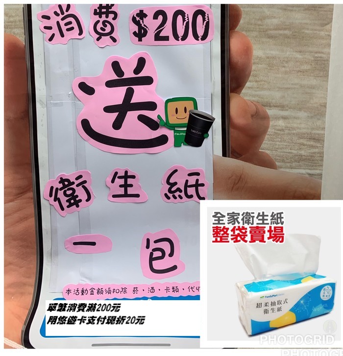 即日起全家福澳店消費滿200送衛生紙