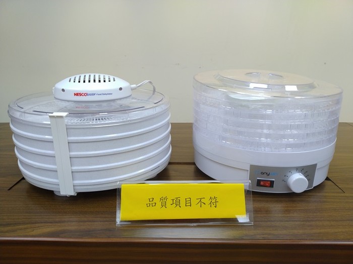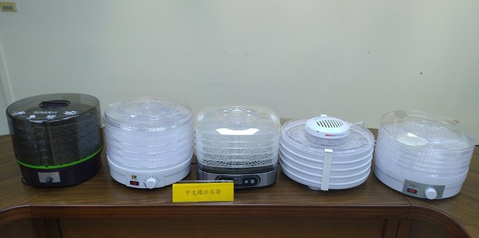 食品烘乾機又稱乾果機,係以低溫烘乾方式來保存食物的營養成分,使用方便,可以簡單做出健康美味的果乾或肉乾供全家人長途旅行或露營時食用。為瞭解市售食品烘乾機之品質及安全性,經濟部標準檢驗局於網路購物平台及電器賣場等販售通路,隨機購買10件樣品進行檢測,檢測結果發現「品質項目」計2件不符合規定,另「中文標示」經初步查核計5件不符合規定。