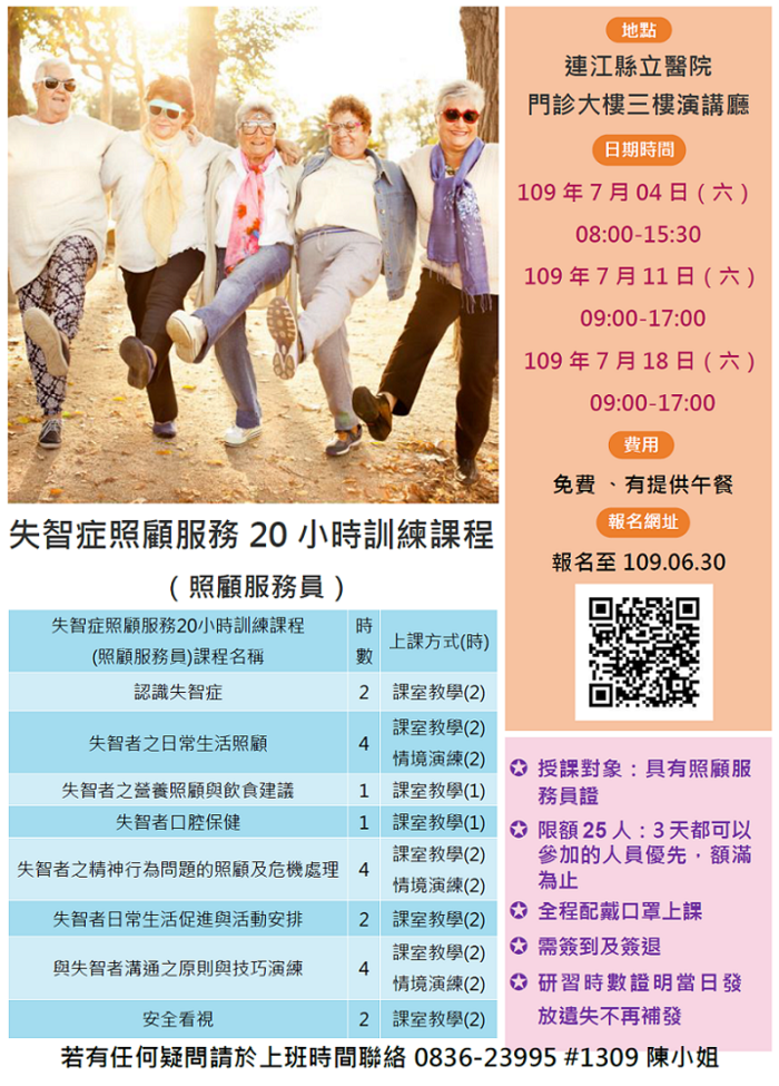 失智症照顧服務員20小時訓練課程 --閱讀人次 : 1115 連江縣立醫院 失智共照中心