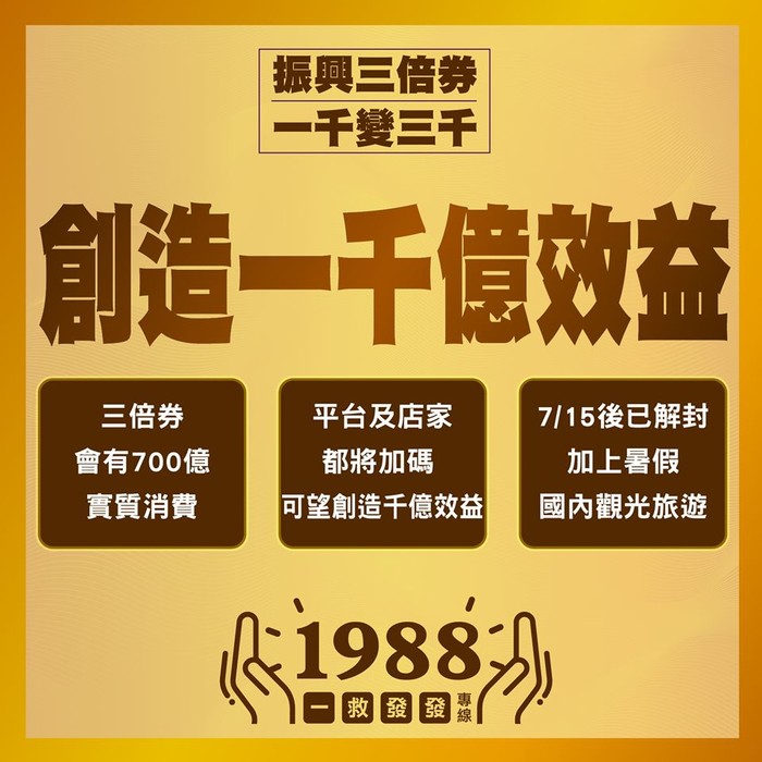 三倍券 7/15開始消費!有問題可打 1988專線!