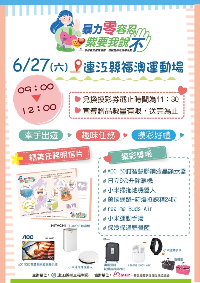第1場戶外宣導活動6/27日即將登場! --閱讀人次 : 1442 109年『暴力零容忍.紫要我說不』家庭暴力暨性侵害、性騒擾防治宣導活動計畫: