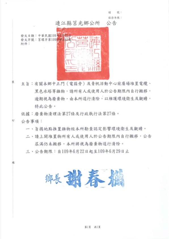 莒光鄉公所查報廢棄物公告