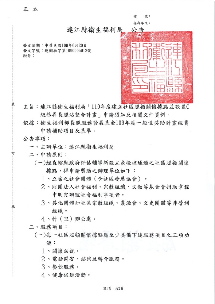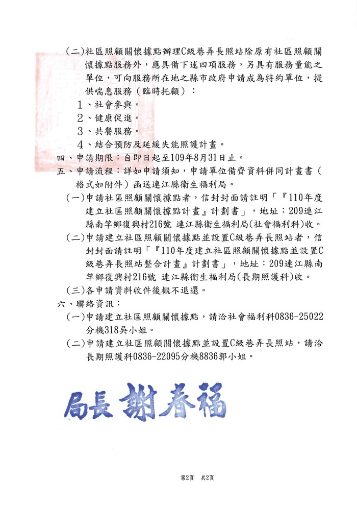 110年社區照顧關懷據點整合計畫申請 --閱讀人次 : 1201