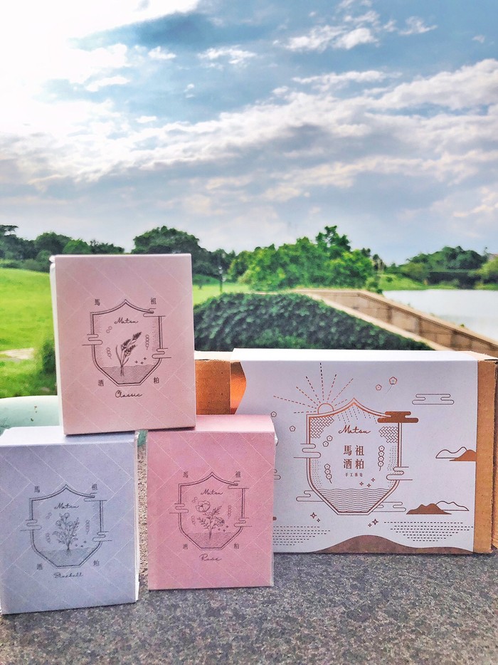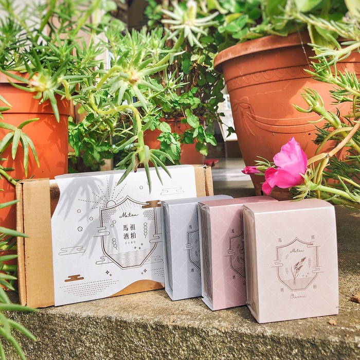新推出的酒粕手工皂系列商品採用中國風設計,以代表軍事的高粱花結合馬祖在地人字砌圖騰作為品牌圖樣,可單顆購買(方形、元寶造型兩種)。元寶造型的手工皂為檀香香氣,象徵吉祥圓滿,外模以昂貴的金箔混合金粉製成,金箔本身就是很好的保養品原料,可增加肌膚的負離子、提升保養品的吸收(售價288元/顆)。