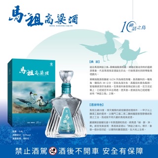 那就是 #黑嘴端鳳頭燕鷗,他們的族群全球數量不到100隻,在5月底到8月底間,會來到馬祖過境停棲與繁殖,是「#有瀕臨絕種危險」等級!‧▍馬祖高粱酒-神話之鳥(酒度:53度、容量:0.6L、建議售價:980元)