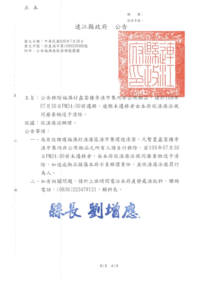 移除福澳村鑫宴樓旁漁市集內非公用物品