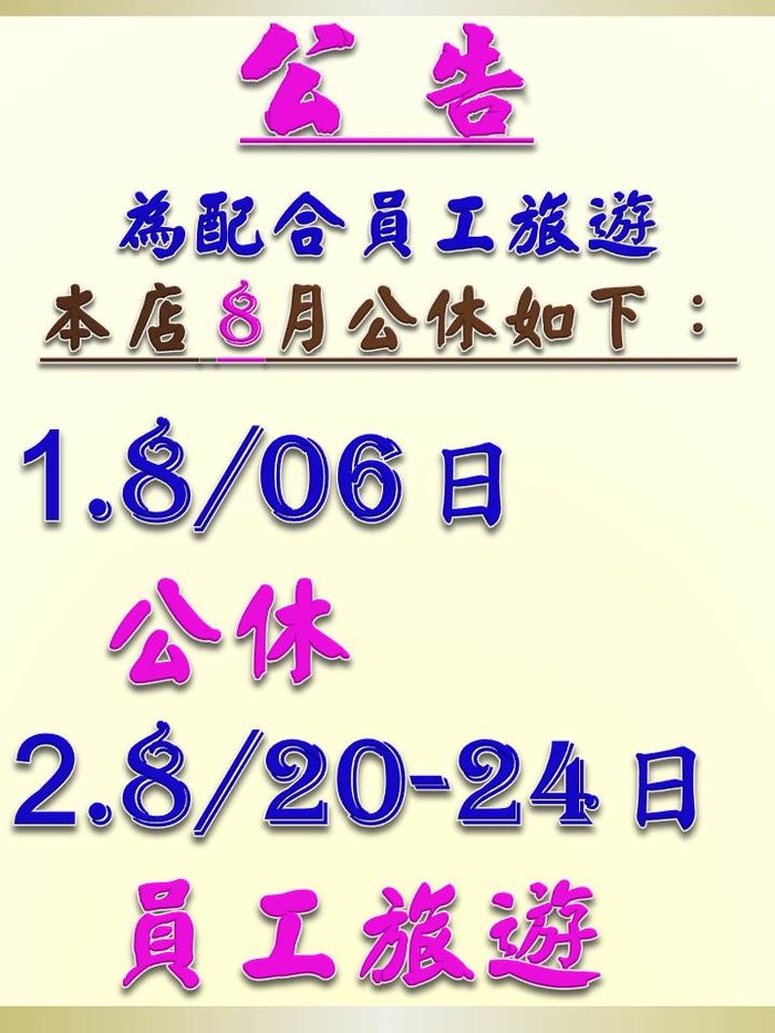 雙貓92精品咖啡 員工旅遊休假公告