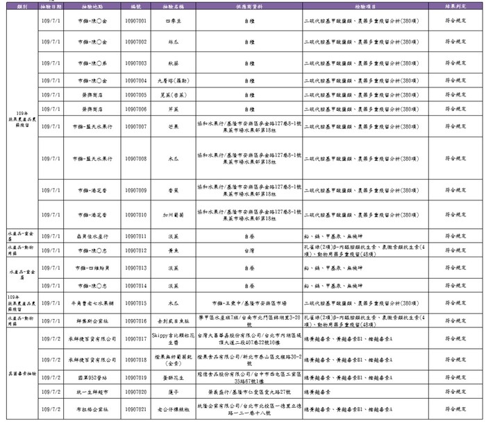 109年7月抽驗清冊