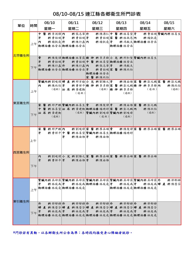 08/10-08/15衛生所門診表