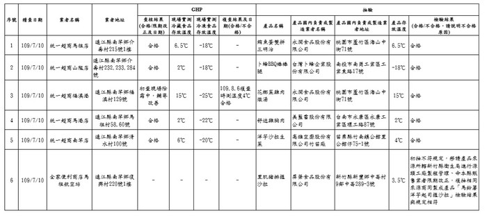 超商稽查抽驗名冊