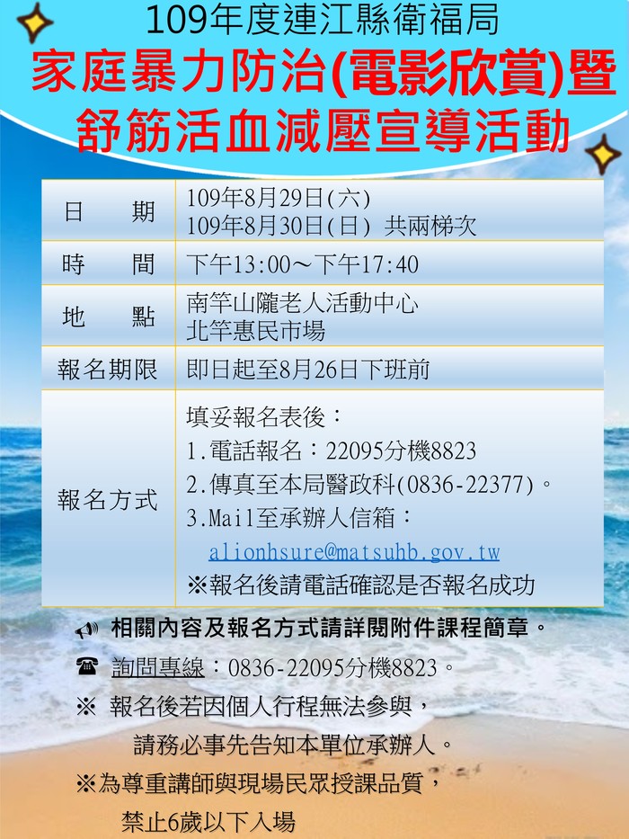 「家庭暴力防治(電影欣賞)暨舒筋活血減壓宣導活動」